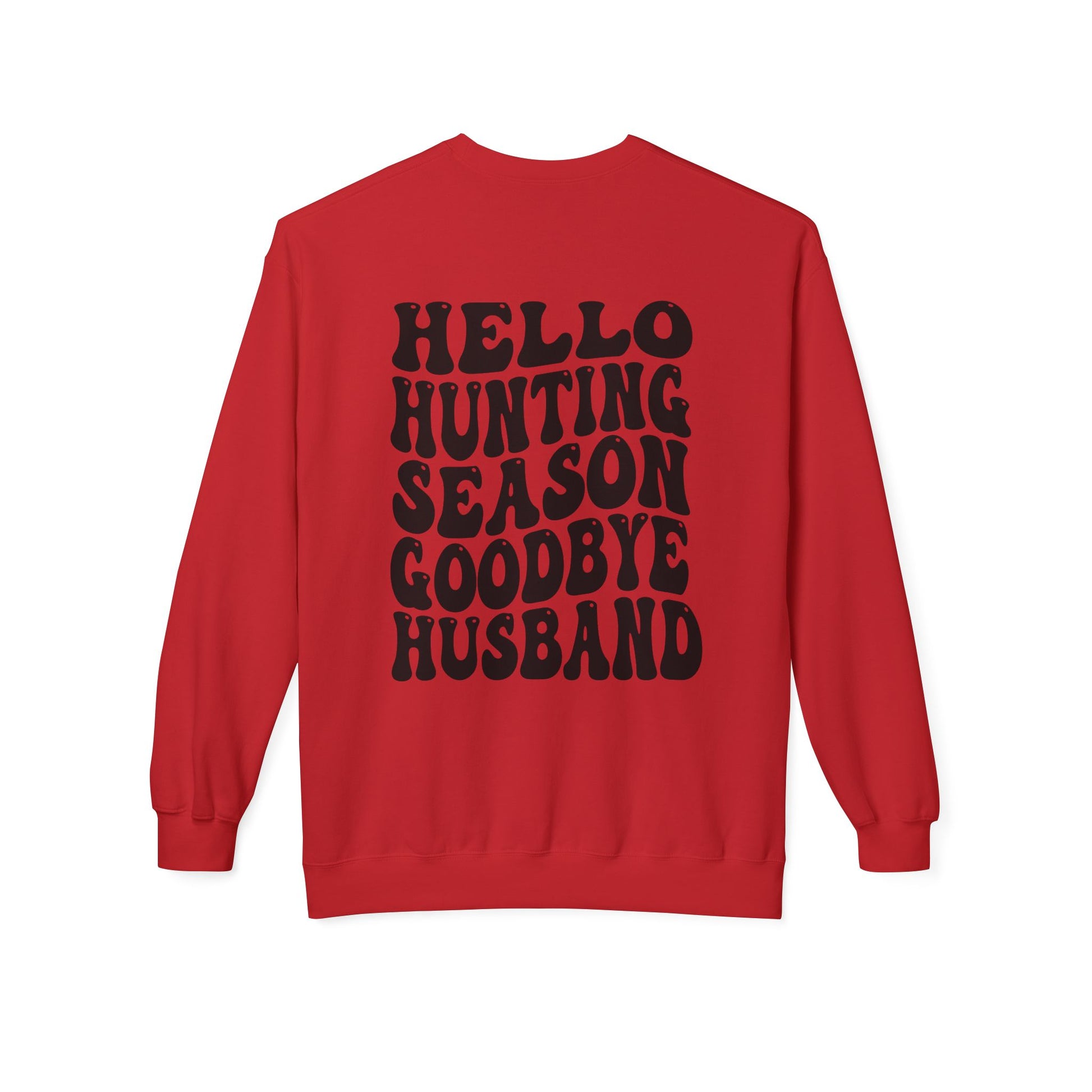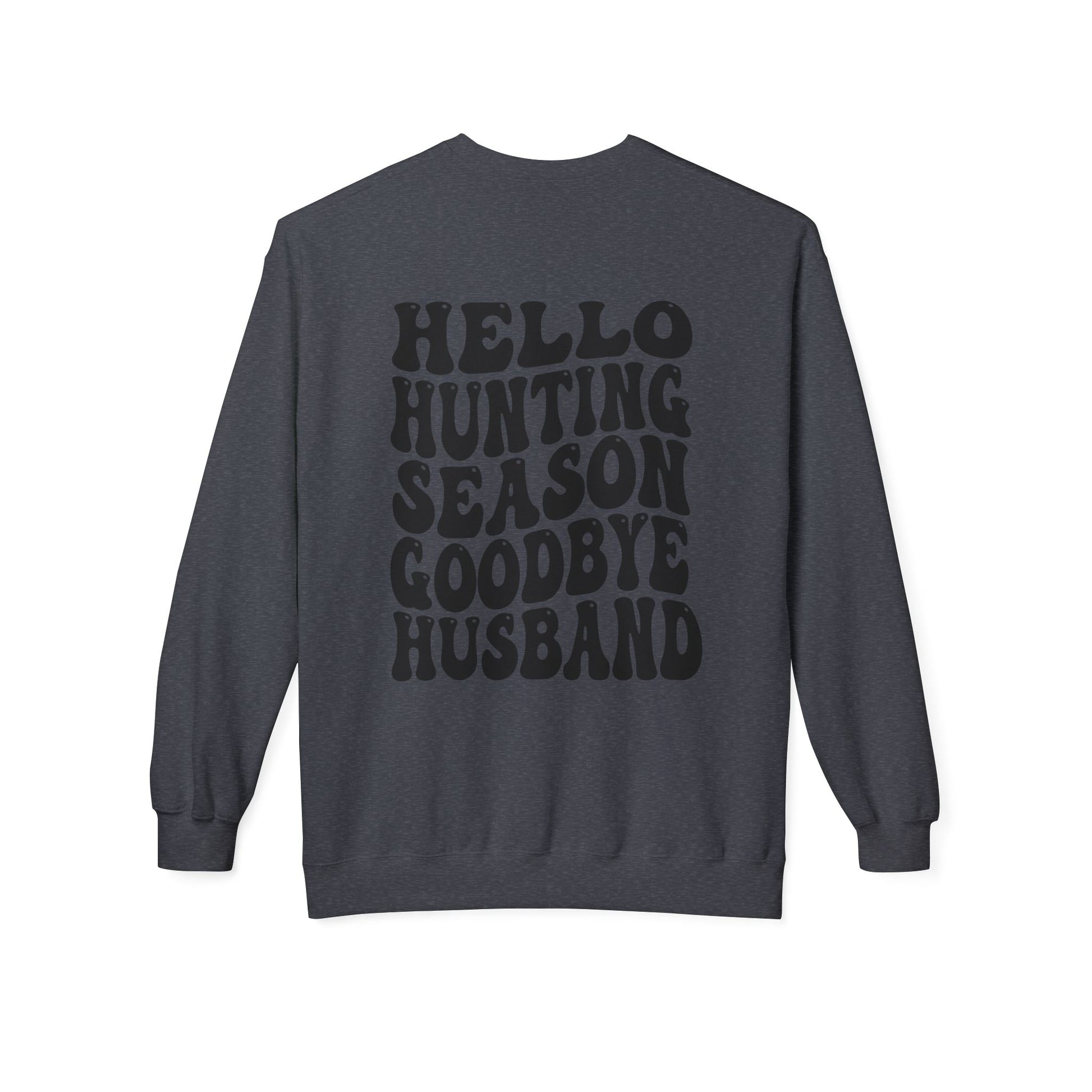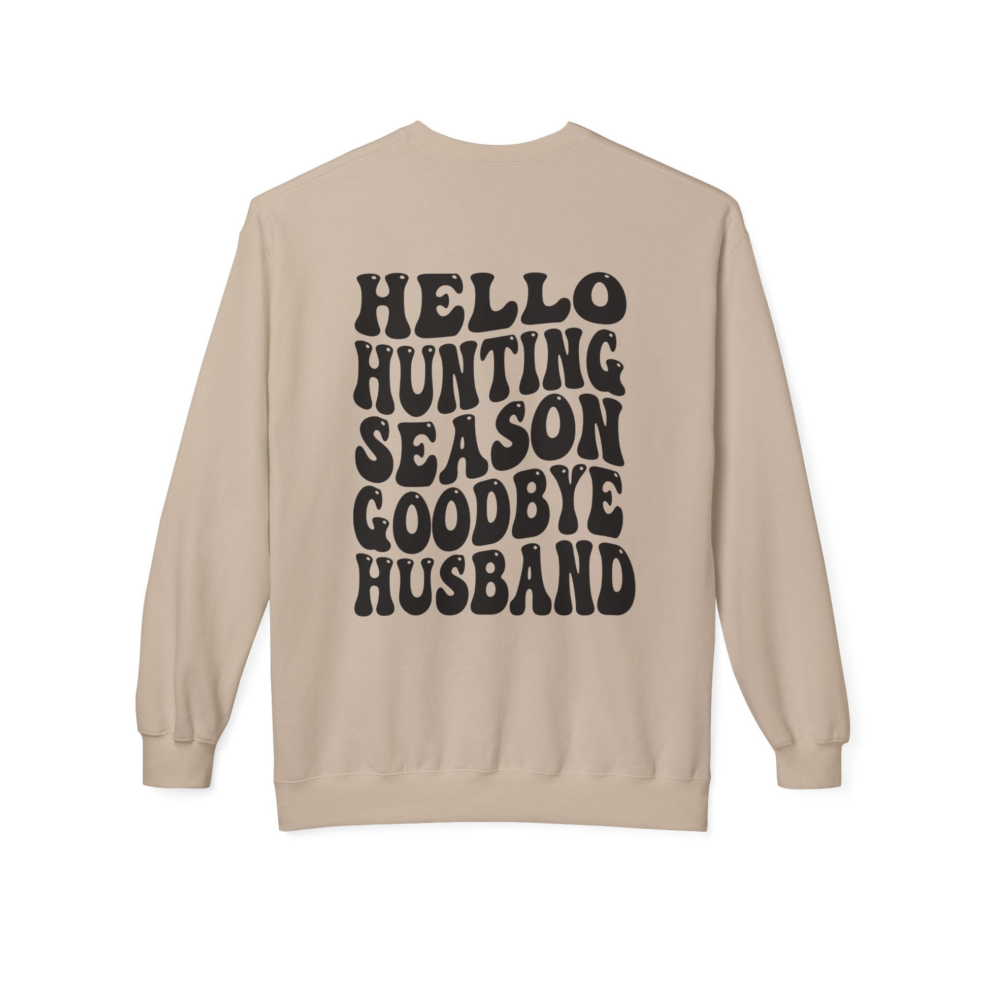 Hunting Season Crewneck Sweatshirt — "Hello Hunting Season Goodbye Husband" Graphic