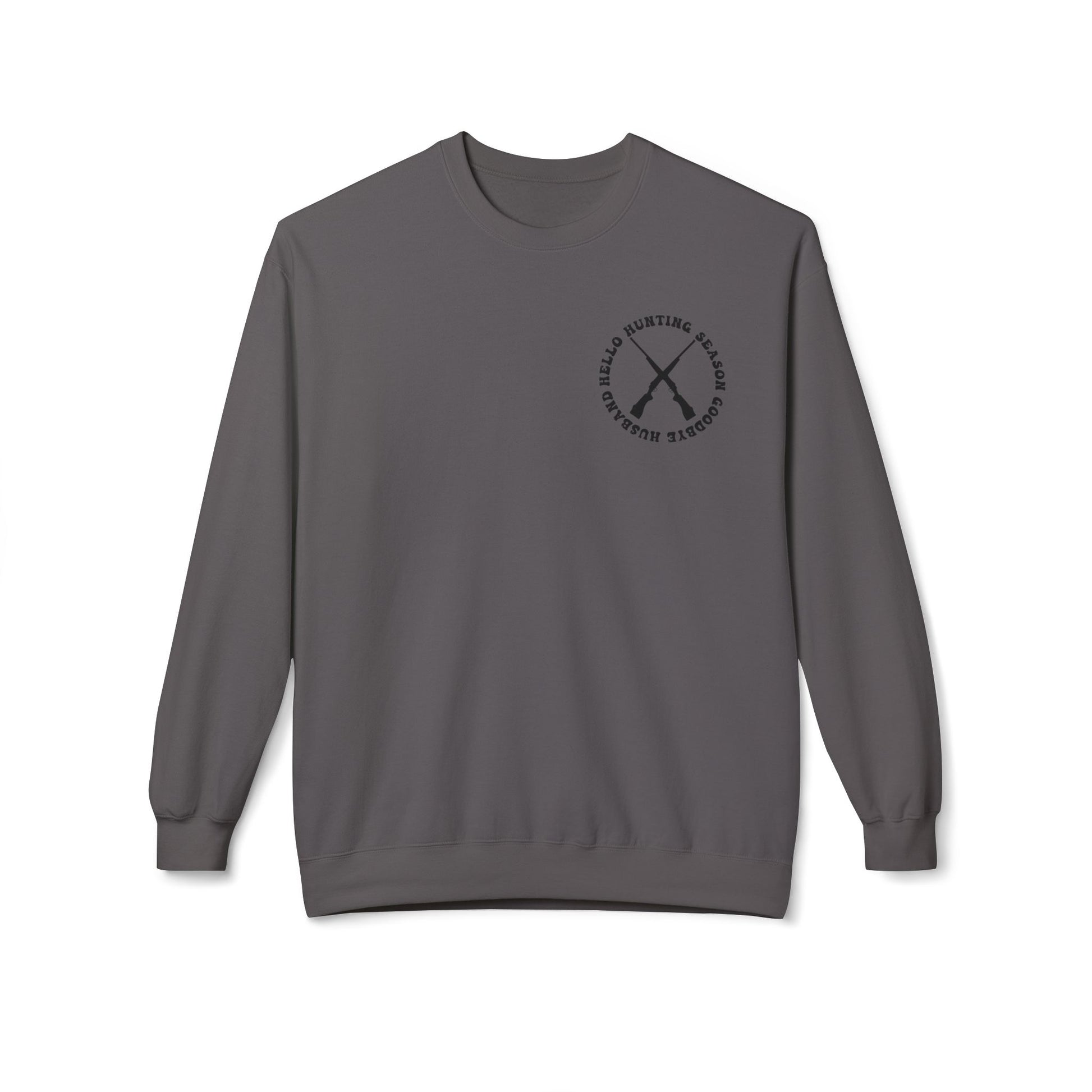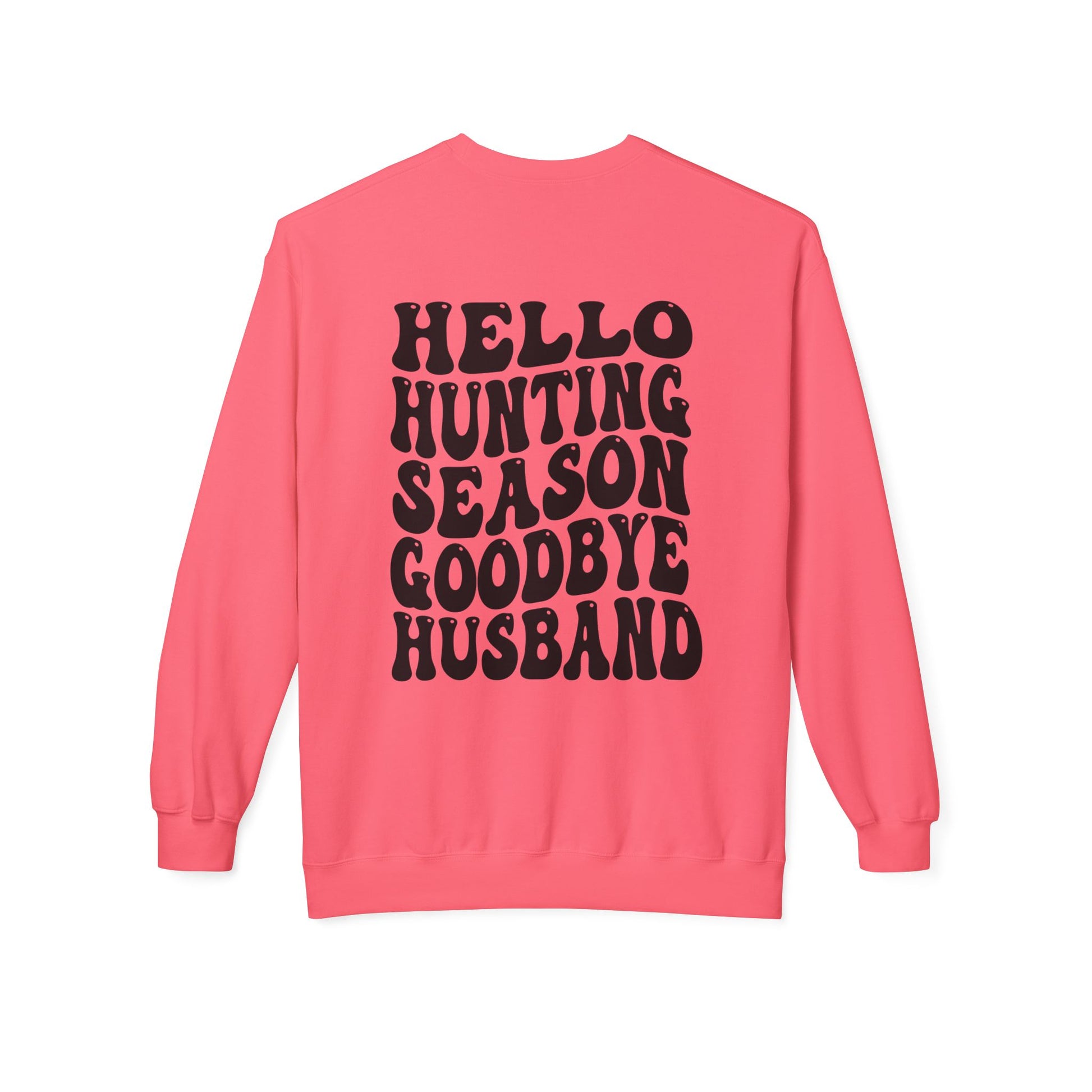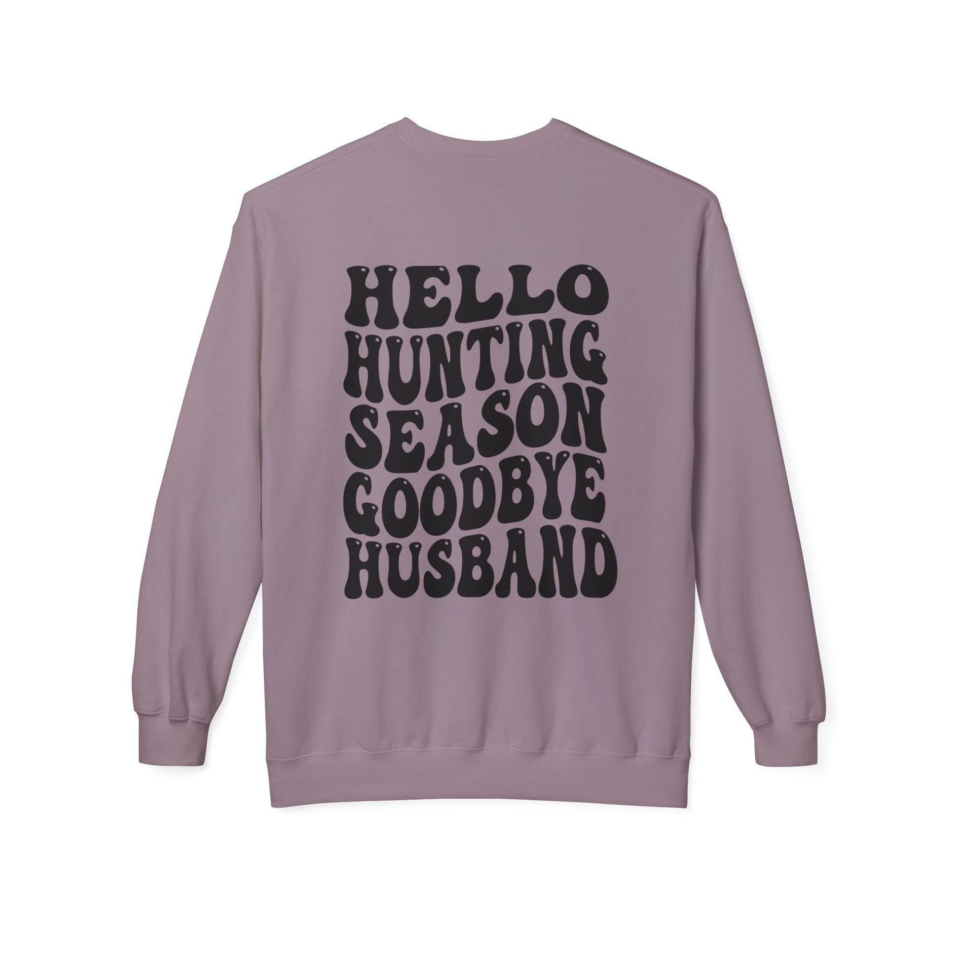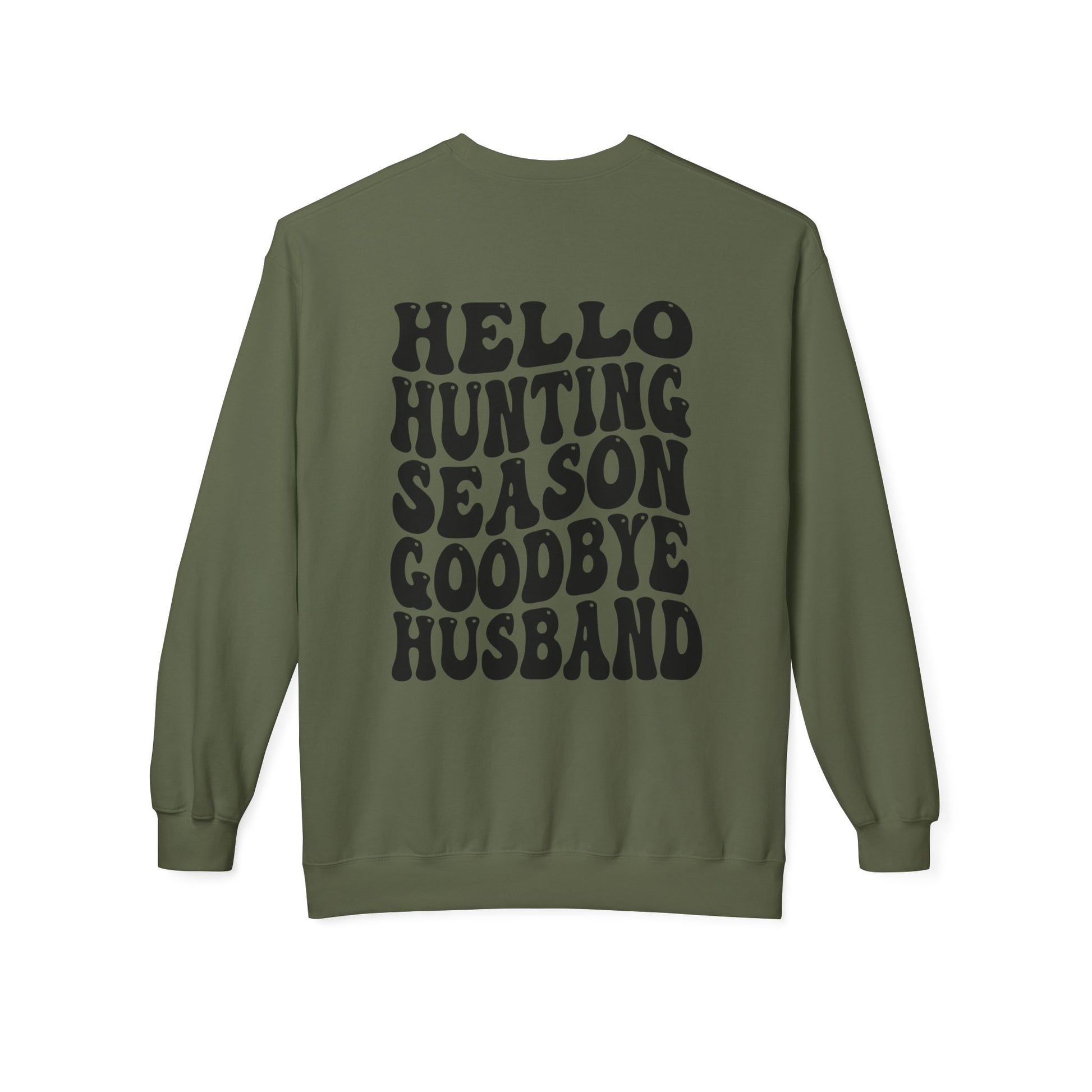 Hunting Season Crewneck Sweatshirt — "Hello Hunting Season Goodbye Husband" Graphic