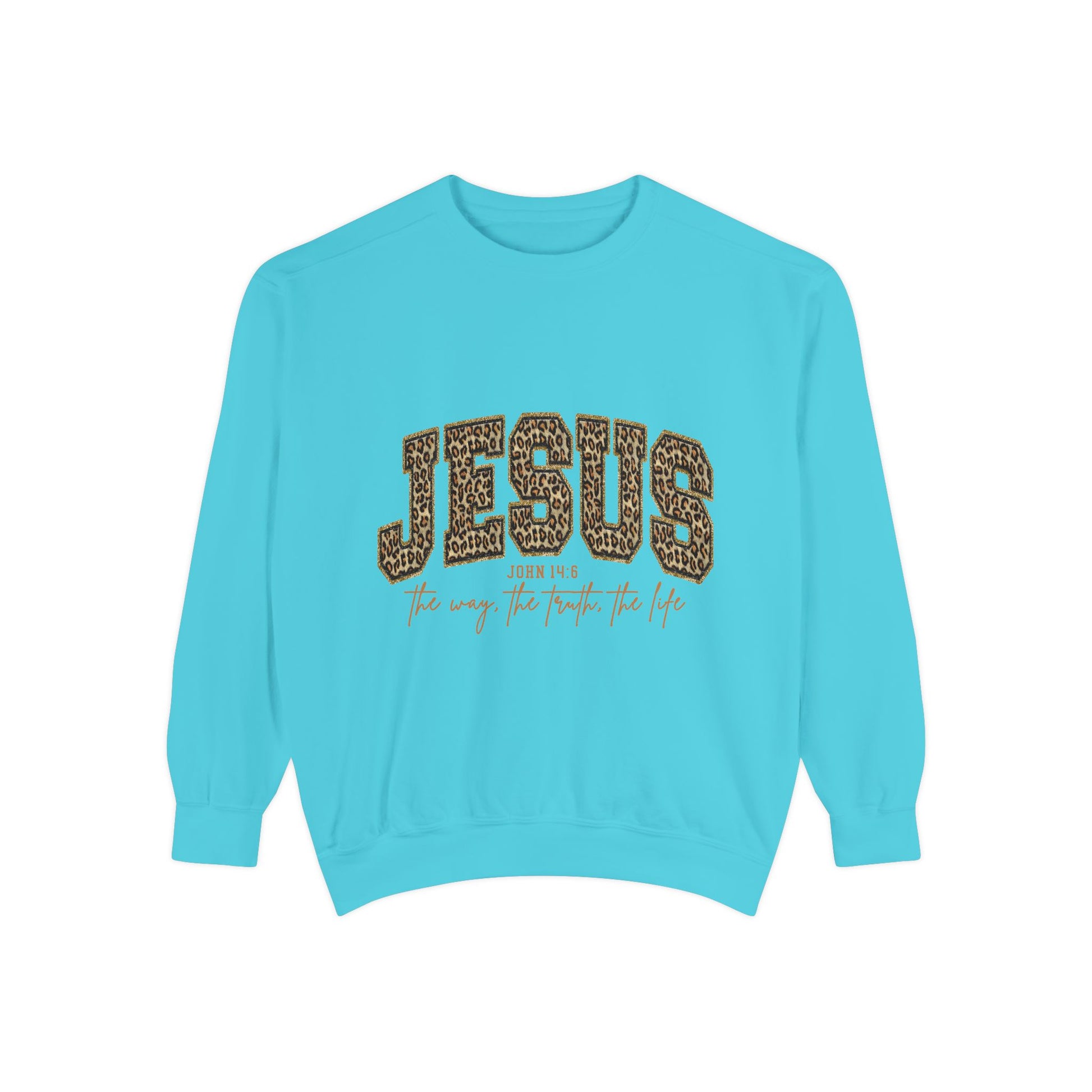 Jesus Leopard Print Sweatshirt - Faith Graphic Crewneck (John 10:9)